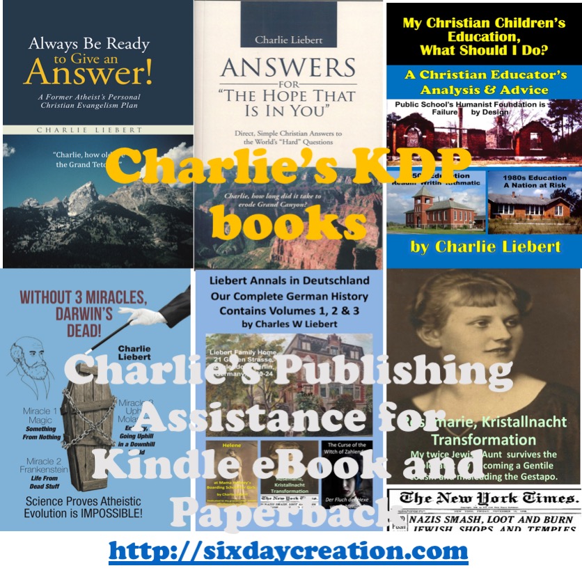 PUBLISH YOUR BOOK! Charlie Liebert, an experienced author, will help publish your writings as an eBook, Hardback, and/or Paperback on Kindle Direct Publishing (KDP) for less than $2,000. Start by sending him a manuscript of 50 pages or more. He’ll review it for content to determine if he will publish it on Kindle Direct Publishing. It’s easy and inexpensive. Click this link for detailed publishing instructions. KDP Publishing. There are two significant advantages to letting Charlie publish your book with KDP. First, when your book is published it is immediately available for sale on Amazon and Kindle at NO additional cost to you. Second, your cost as the author of paperback copies is about one-third of the cost of traditional publishers. The table shows my first three books published with a major “Christian” publisher, which I later converted to KDP. Note the Price, Cost, and Margin differences.